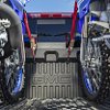 Look to the front of the bed, and you’ll spot three notches in the CFRP. Those are intended to hold motorcycle wheels. Capacity should be about two skinny ones, like dirt bikes, or one big ‘un. Then there’s a range of anchor points for straps, which is ideal for hauling bikes.