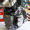 The head begins life as a stock casting, but it’s been welded up to yield a roughly 13:1 compression ratio with better flow. CP pistons are pinned to Carillo rods. Below that, though, Matt told me the motor was almost bone stock. Vance & Hines modified the flywheel to allow them to tweak its weight. The stock Street 750’s got a six-speed tranny; the XG750R uses four of them, which allows them to remove a couple of gears and save weight. So far they’re using the stock clutch.