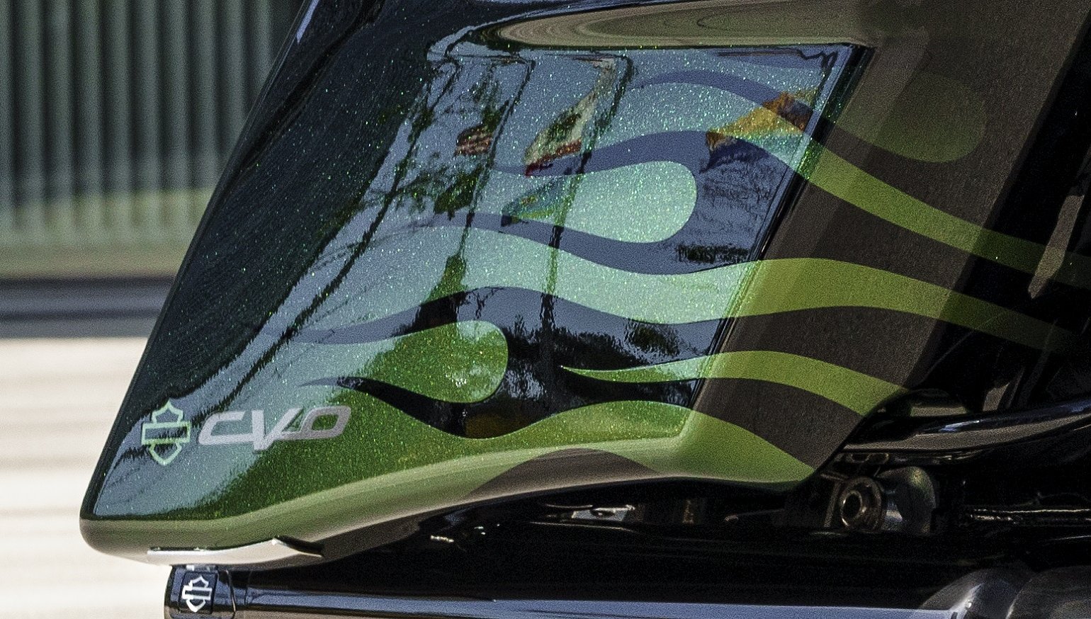 In addition to having the most bells, whistles, and cubic inches of the production Harley-Davidson world, CVO models are renowned for their paintwork. Looks like flames are back on the menu!