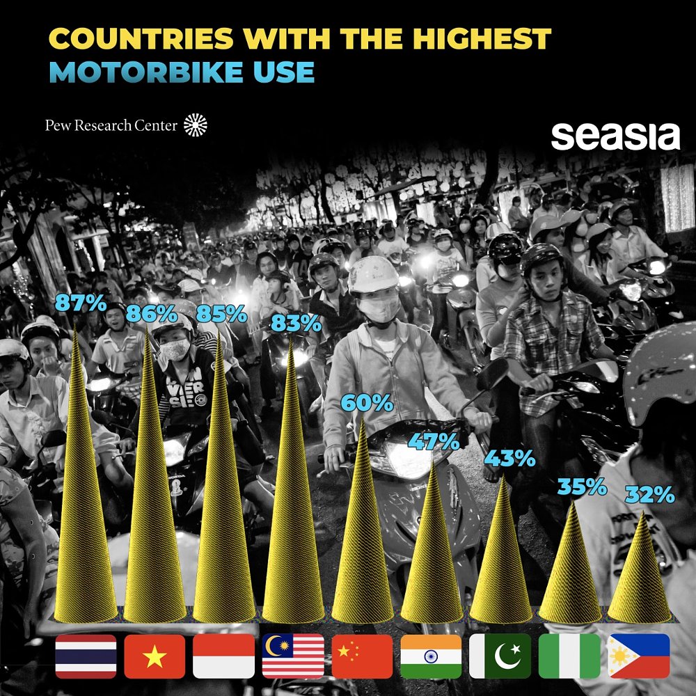 India is the largest motorcycle market in the world. China isn’t far behind, either. However, Southeast Asia is home to thriving two-wheeler markets. In fact, Thailand, Vietnam, Malaysia, and Indonesia rank above China and India when measuring motorcycles per household.