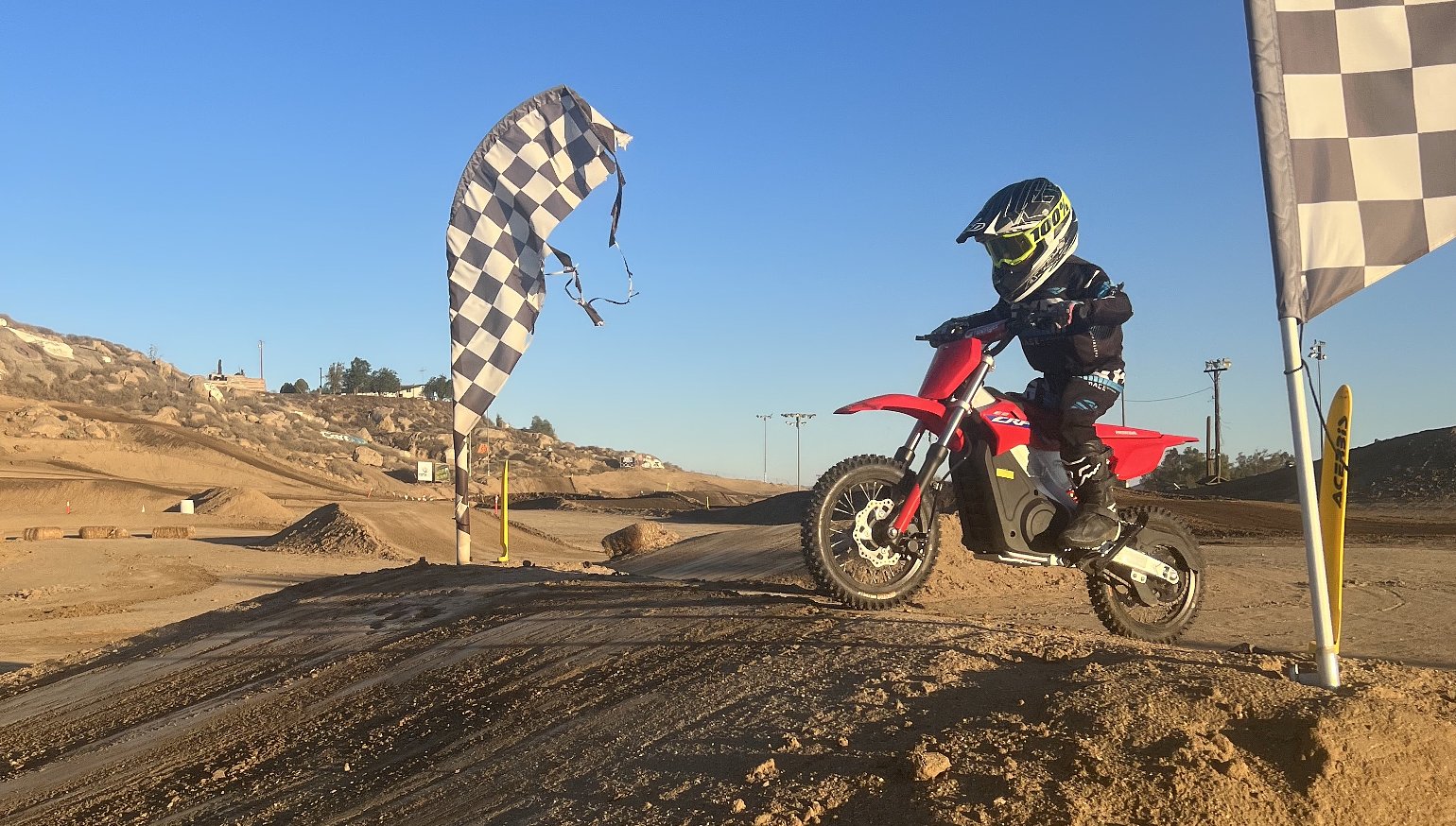 His testing on the CRF-E2 included some driveway time, as many parents will surely experiment with, as well as time on three local motocross tracks in Southern California, and at OHV areas in the nearby desert.