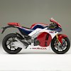 So what do you get for your $184,000? You get the compact and lightweight 1,000 cc V-4 engine from the race bike, with titanium connecting rods and the sand-cast aluminum crankcase and with none of that wimpy street stuff like counterbalancers, that might add weight. You get the electronic aids needed to control the bike, including selectable power modes, engine-brake control and traction control. You get the carbon-fiber-reinforced plastic fairing with a Honda red-white-and-blue and Japanese flag motif. You get the headlight, tail light, speedometer, catalytic converter, mirrors and other stuff you need to be street-legal, but Honda also provides a Sports Kit to convert the bike for racing. That includes a different ECU, quick shifter, data logger set and many other parts. (Update: Actually, no. The Sport Kit is not available in the United States. See more below.)
