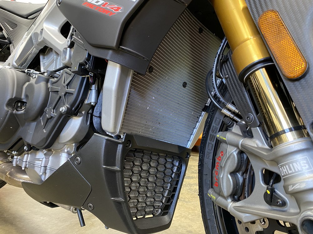 Big horsepower calls for a big cooling array. Even so, coolant temps can be hard to manage when you come to a stop. Allowing the bike to idle keeps coolant circulating. Photo by Ari Henning.