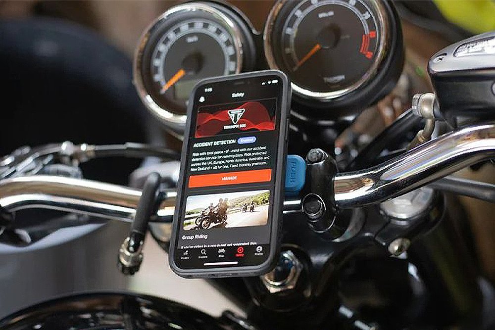 Triumph offers a comparable service, but it relies on the user’s smartphone instead of onboard hardware. That’s why all motorcyclists, regardless of make and model, can use Triumph’s SOS app. Like BMW’s IEC, the subscription-based service ($4.99 monthly) cross-references movement sensors and GPS data to confirm a collision. However, Triumph’s SOS also employs the device’s microphone to detect loud sounds commonly accompanying an accident.