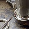 The spanner nut is the last thing in the way. Spray a little lubricant on the spanner nut threads and wipe them clean with a cloth. They’re usually a very fine pitch. If you can’t loosen the spanner nut by hand, use a spanner wrench or a model-specific tool to loosen the nut. Some knock it loose with a mallet and piece of soft metal, like aluminum or brass. There are also the motorcycle Michelangelos out there who'll do this whole bearing swap with hammers and chisels. You’ll often see their marks on a spanner nut.