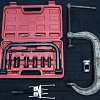 There are lots of spring compressors. You can make or buy or some combination of the two. If you’re making, C-clamps come in handy here. If there is any advice I can give you, it is this: the larger the access window is in the tool, the easier your life will be.