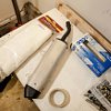 Next, put on gloves. Latex, work gloves, whatever. Fiberglass literally contains microscopic pieces of glass. Anyone who has done this job before (or insulated a room) can back me up on this: you will get a nasty rash from fiberglass that’s irritating and itchy. Gloves are your friend. Change them early and often.