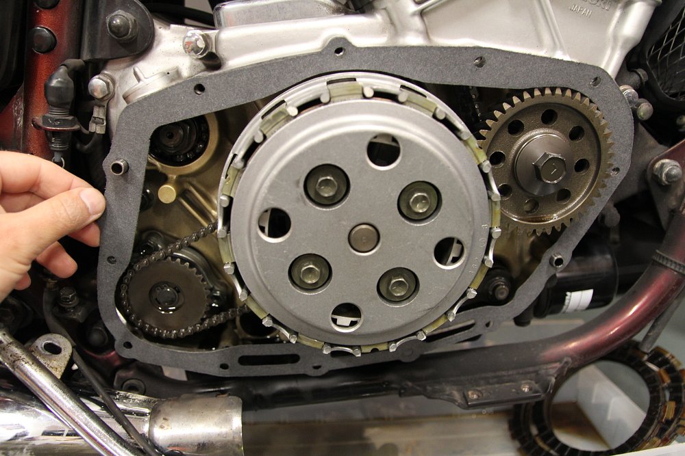 For this job you will need an oil drain pan, repair manual, replacement clutch plates, new clutch springs, clutch cover gasket, motorcycle engine oil and some basic hand tools. A dial caliper is only needed if you intend to reuse any of the original clutch parts. If you are due for a new oil filter soon, now is a good time to change that, as well. Be sure that your bike is clean before disassembly. You do not want any dirt getting into the primary case.