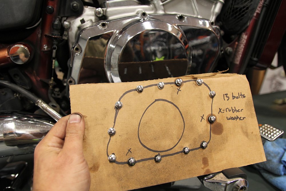 Since you used the “cardboard trick” when you removed the bolts, you know exactly where all the cover bolts belong now that it is time to reinstall them. Hand thread all of the bolts to get them started and then go back to snug them down properly in a staggered pattern. You want to torque down the cover evenly but be sure not to overtighten them. Too much torque on cover bolts will strip the threads out of the engine case. It is much better to have to go back and snug them up if the cover is weeping a little oil than to have to deal with a stripped engine case. If you do discover a stripped hole, there are a few options to repair them, but that is a “hole” other article.