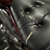 Another item of note for you cruiser riders: button tufting is usually used on very deep, pillowy saddles, because it allows the cover to be pulled taut without all the tension coming from the edge, which sort of negates the idea of the deep foam. Our replacement cover was a pleated-style cover, so I was a little nervous when it showed up, because keeping it looking nice was likely to be a little difficult without those buttons in the center helping me out. (I was also bummed out that we only got covers for the rider and pillion saddles. The sissy bar back rest was apparently chopped liver. Ours was still in OK shape, but still… pleats and tufts? On the same bike? The custom-bike guy in me wept.)