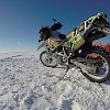 Canada’s Northern Territories become a different world in the winter. Everything is affected by the extreme temperatures. Your average motorcycle oil will turn to the consistency of Vaseline at minus 30 degrees. Aside from the use of a GPS Emergency Spot Beacon, the cold temperatures force Solaro to outfit himself and his bike with relatively old-school low-tech gear.