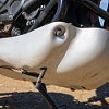 The KLE500’s front end enjoys 8.3 inches of travel, but its rear travel is reduced to 7.7 inches. By contrast, the Ibex 450 takes the balanced approach, floating on 7.9 inches of travel both fore and aft. More considerable is the gap in ground clearance. Hovering 8.7 inches over the terrain, the Ibex’s belly pan is far less likely to drag than the KLE’s, whose undercarriage rests just 7.3 inches from the ground.
