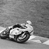 The internet seemed to think that this was John Surtees, the only man ever to win both motorcycle grand prix and Formula One world titles, laying some leather down during the Eisenhower administration. I'd recognize those pipes anywhere; that appears to be a Vincent, which would have been very, very early in his career. (Surtees was on Nortons by 1956! This was groundbreaking!) I mean, this would have been 16 years (or earlier!) prior to Kenny biting Jarno’s fresh, right? And you can see clearly there’s some form of knee protection on his leathers.