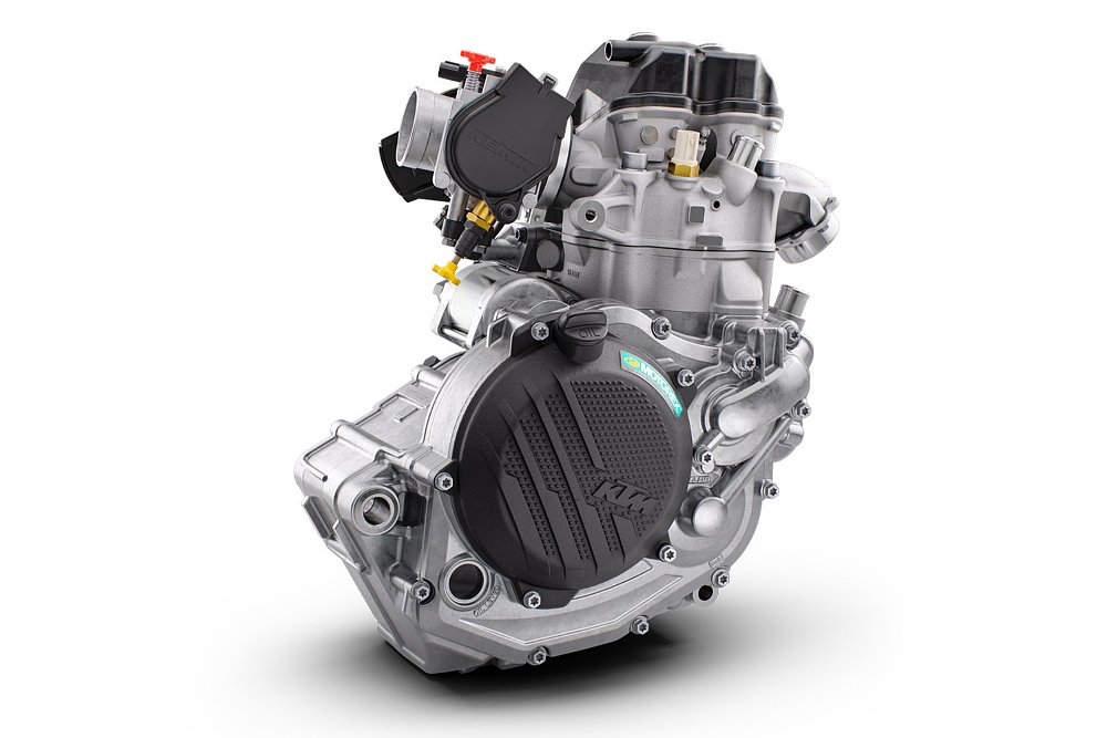 In stock form, the 350 EXC-F engine produces 51 horsepower and close to 27 foot-pounds of torque. KTM photo.
