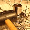 If you have to replace sealed wheel bearings and don’t want to purchase an expensive bearing puller, you’re in luck if you know how to weld. Weld a small scrap of metal to the inner race. Flip the wheel over, and using a punch, tap the bearing out. This works well for neck cups in your frame as well. This does destroy the bearing, but hey, they’re cheap, and you were pulling 'em out anyway, right?