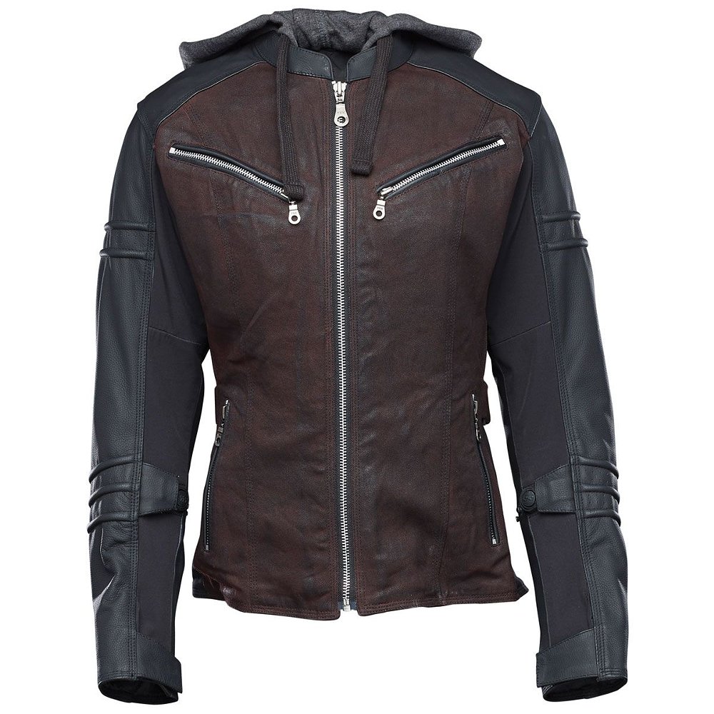 Speed & Strength’s Women’s Street Savvy Jacket is a fashionable combination of leather and waxed cotton canvas. If you practice concealed carry, it’s the only motorcycle jacket on the list with an Armed Response concealed carry pocket, because you can never be too safe these days. The jacket's equipped with a full complement of removable Vault CE-approved armor (elbow, shoulder, and spine protector). The sharply styled Speed & Strength Women’s Street Savvy Jacket has a vest liner with a hoody that’s removable and is a well-made, durable multi-season women's motorcycle jacket.