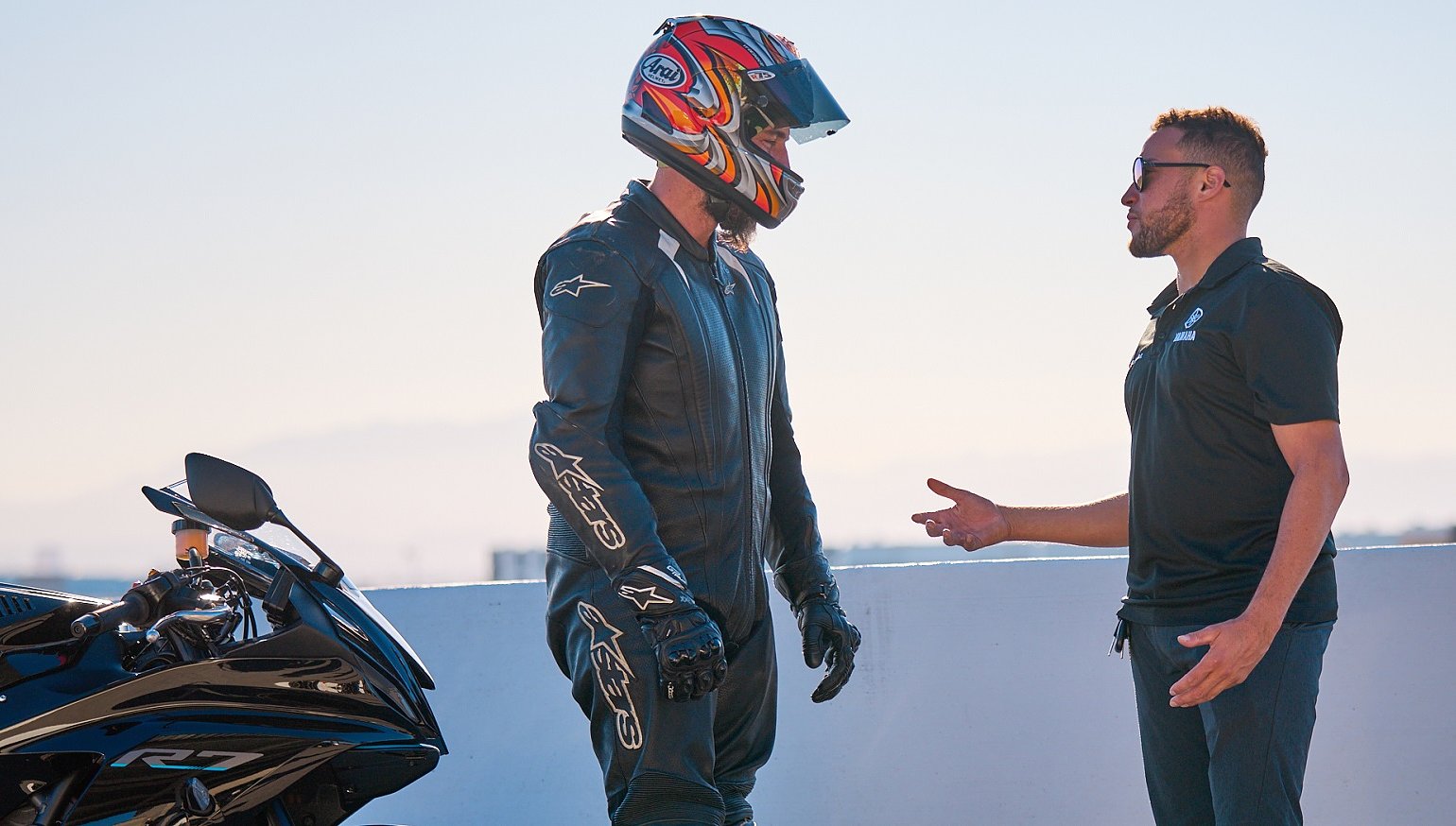 The entire class surrounded the big screen, watching ChampSchool instructor Eziah Davis ride a lap of New Jersey Motorsports Park. Filming each student is a big part of the two-day program, and an instructor lap is always included. Eziah, blindingly fast and smooth on a Yamaha MT-10, brought the room to silence.