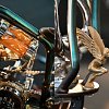 There's no denying this bike's engineering is impressive, but it's the finish that defines Nike. The handmade tank and frame wear a two-tone paint scheme that shifts between metallic green and blue in the light. Elsewhere, nearly every visible surface has been polished to a mirror finish or painstakingly wrapped in gold and silver leaf.