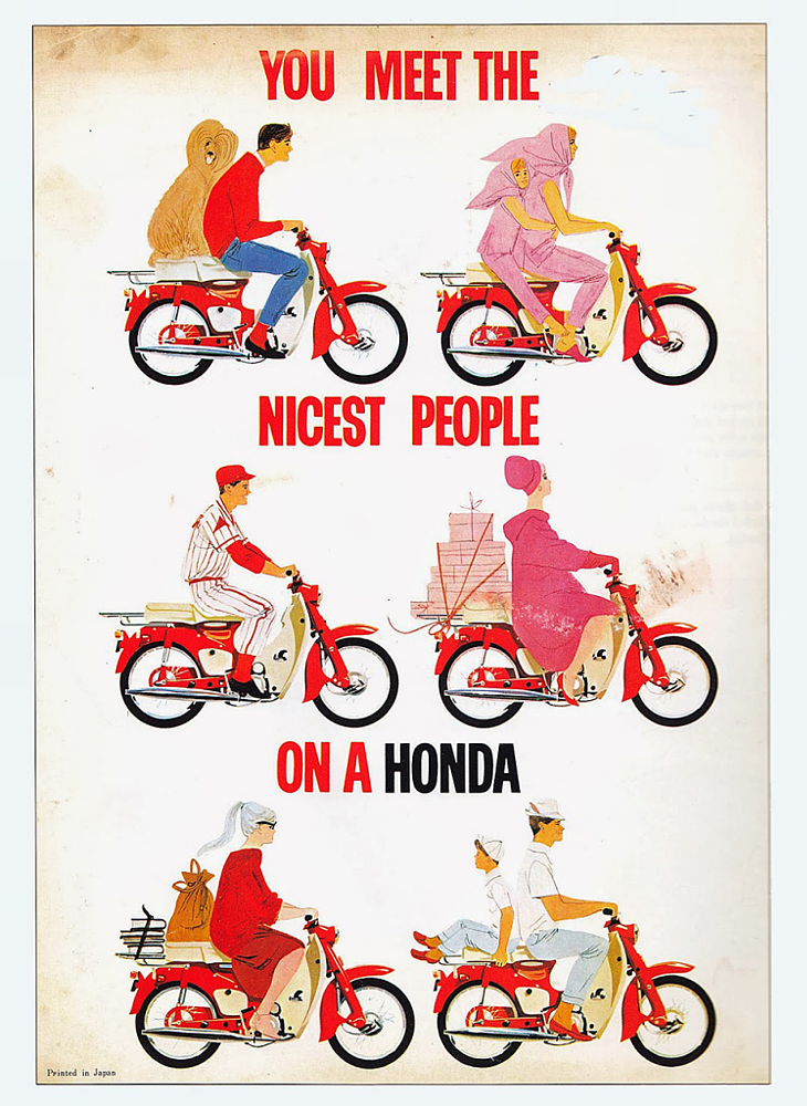 These Honda owners weren't patch-wearing badasses or – nearly as terrible – flat track or pavement racing fans; they were part of a brand new market sector – the non-motorcycling motorcyclist. Truly, as Honda’s iconic ad said: “You meet the nicest people on a Honda.”