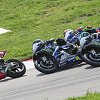 Immediately after Saturday's Supersport race ended, a light shower hit the track, but only part of it. Most of the track was dry, but part of the track was wet. Superbike riders on slicks were forced to ease their way downhill on slicks on a wet track. The result looked like a Motul Superbike race for most of the lap and an intermediate class track day group in the few wet corners, as the pace and lean angles reduced dramatically. Despite the fact they were doing most of the lap at full speed, in the early laps of the race the frontrunners were putting in laps in the 1:49 range, 10 seconds off Cameron Beaubier's track record set in the morning.