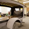 To go with the trike, Tombstone builds its custom coach to be pulled behind, with a fiberglass body on a steel box tube frame and wood decking. Features include chrome wheels, LED lighting both inside and out, and the custom chrome coach lights for turn signals.