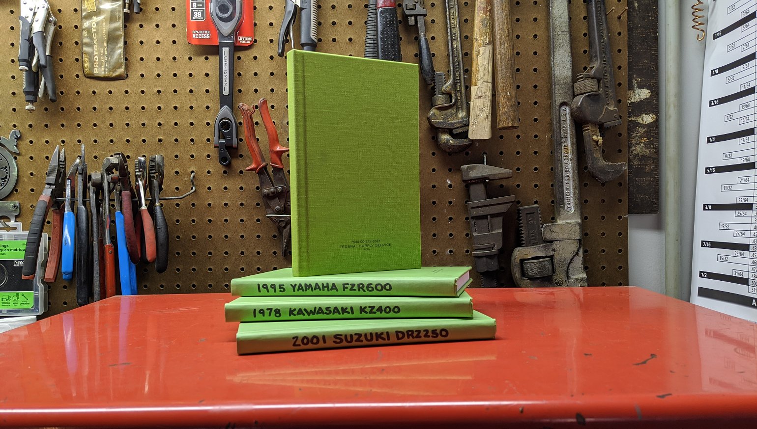 - Some kind of title. I really like the green five-and-a-quarter-by-eight record books (search “NSN 7530002223521”), and I keep one for each vehicle I own. Since the books all look the same, I write the name on the spine so I can grab the correct one off the shelf. If the titles aren’t cutting it and you’re switching to the Dewey decimal system, your motorcycle collection might be getting out of hand.