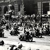 World War II brought about domestic rationing of critical materials. Steel, rubber, gasoline, and other items were needed for the war effort. Civilian sales of cars were halted in 1942. Racing was banned. Gasoline was rationed heavily. Motorcycle production shifted to models built for military use.