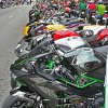 Ready to ride. Photo by Lance Oliver.Motorcycles on Meridian has been a part of the MotoGP weekend from the beginning. Meridian is the main north-south street through the heart of downtown Indianapolis and a portion of it from Monument Circle south is closed to all traffic except motorcycles and pedestrians. It keeps getting bigger and bigger, and what started out as a Saturday night event now fills downtown both Friday and Saturday evenings. This year, it burst the seams and I had to park two blocks beyond the closed section of Meridian, which was fully lined, both sides and in the middle, with thousands of parked motorcycles. Even people who don't ride come out to see the free show.