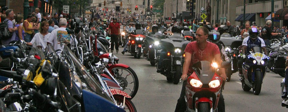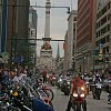 Looking south on Meridian Street from Monument Circle: motorcycles farther than the eye can see. Photo by Lance Oliver.