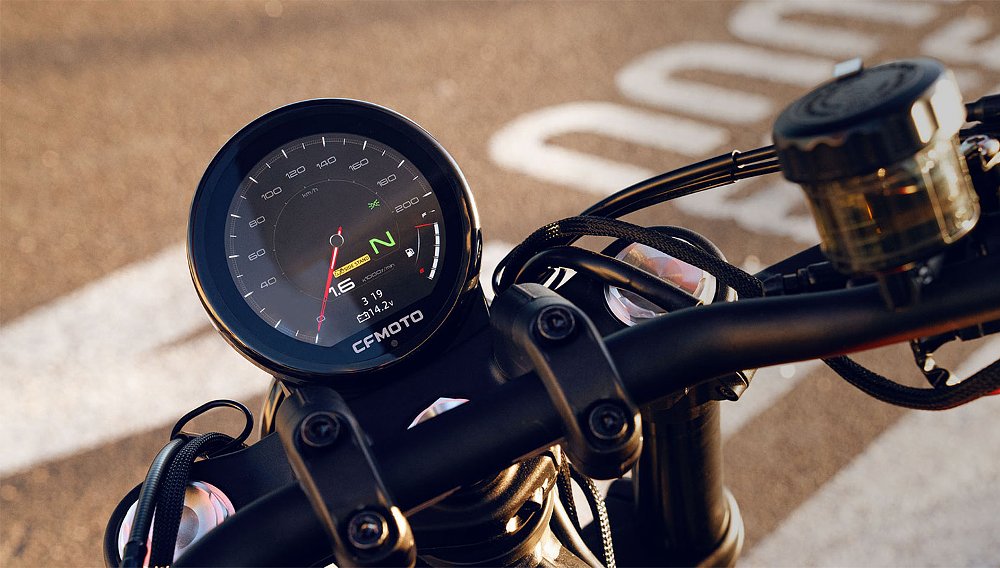 A full-color TFT dash and radial front master cylinder aren’t often found on entry-level cruisers. CFMOTO photo.