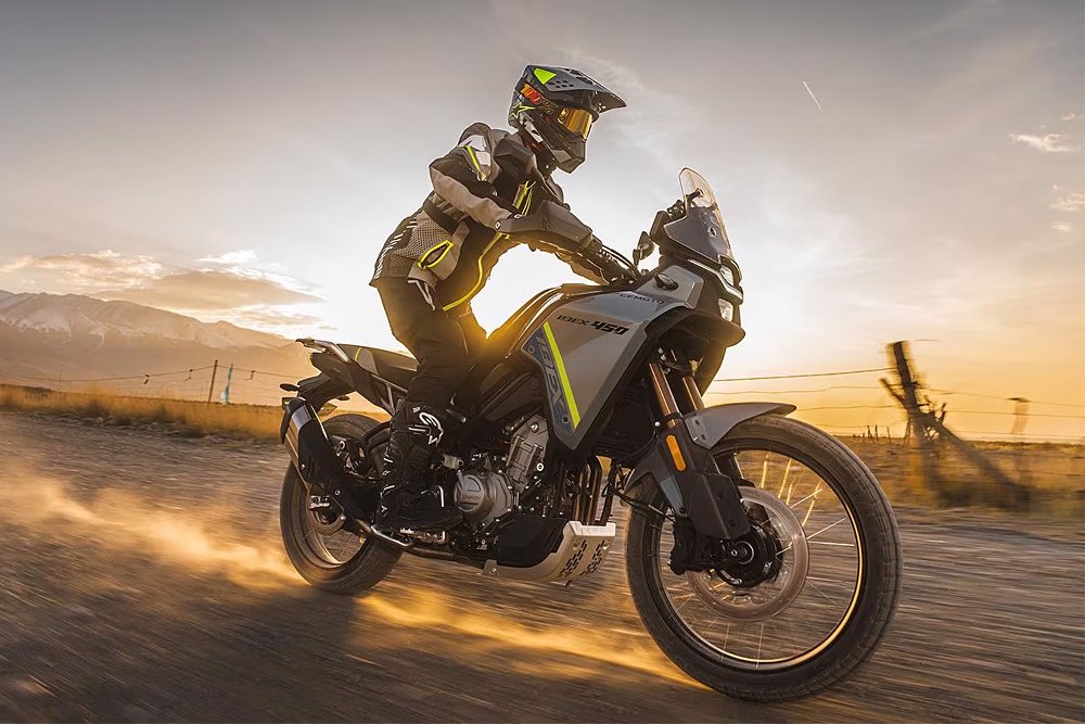 CFMOTO previously introduced the 450MT small-capacity ADV at EICMA 2023. The company renamed the model the Ibex 450 in the United States to align with the existing Ibex 800 T adventure-tourer. CFMOTO photo.