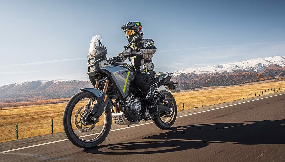 To power the baby Ibex, CFMOTO repurposes the 450SS and 450NK’s liquid-cooled, 449 cc parallel-twin engine. In adventure form, the engine produces a claimed 44 horsepower (at 8,500 rpm) and 32.5 foot-pounds of torque (at 6,250 rpm). Two ride modes (Standard and Off-Road) and switchable rear ABS only enhance the ADV’s versatility, while a Bluetooth-connected, five-inch TFT dash and USB-C port add convenience to the cockpit.
