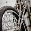 The frame has some neat details. There are a pair of 1940 Walkin’ Liberty fiddy-cent pieces pressed into the webbing at the neck, to match the engine’s year of manufacture. In an effort to keep this bike skinny, Christian spaced the rear axle plates so the sprocky and rotor could run outboard the plates.
