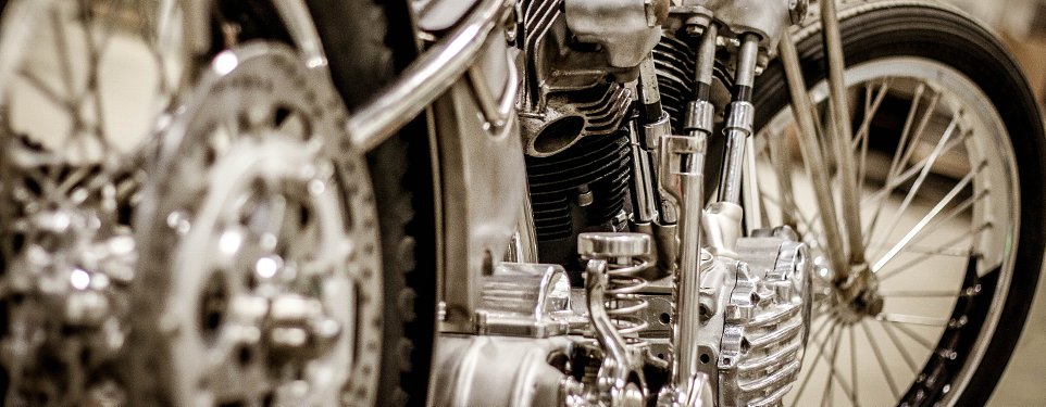 He also machined his own hubs for the wheels. One half is standard H-D cross-4 spoke lacing, and the other side is radially spoked. I get confused lacing a wheel normally, and this guy’s treating the process like a punchline. When he got all done conquering that little brain-teaser, Christian turned his attention to the gearbox.