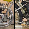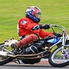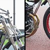 With more grip on offer, speeds and lean angles increased, leading to the asymmetric handlebar designs and peaked tire profiles that still typify auto race machines today. The bikes also lack front and rear brakes (similar to speedway bikes), forcing riders to negotiate each turn with engine braking and line choice alone. Nearly as stripped-down is the suspension. A rigid rear end is the result of a diamond-style frame, while a collection of internal fork springs and external steering dampers suspends the front end.