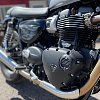 For the rider looking to escape to a simpler time, this dash will check all the right boxes. Aside from the analog speedometer there is an itty-bitty LCD screen that will read out features such as trip A or B mileage, a 24-hour clock, miles until empty, and a digital tachometer. These functions are easy to scroll through with a touch of the info button on the lefthand cluster. The Speed Twin only comes with two ride modes — rain and road. Again, one simple button toggles between the two modes. And that, ladies and gentlemen, is it. The Speed Twin dash is truly distilled to only the barest essentials.