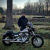 This is Nate. Nate's my neighbor. A little younger than me, he's a stereotypical H-D customer. Beard. Fix anything and everything. Has a truck and is willing to use it to help anyone do anything. Nate rides around on a 2009 Dyna, and he used to have a 600 cc race replica when he was younger. He's always been a little reticent to hop on any of my tankshift machinery. I know he knows I wouldn't care if he banged something up, but I think the potential guilt doesn't outweigh the potential fun.