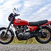 The first production models were the 1977 KZ650B1s, available in Candy Emerald Green and Candy Super Red. (My B1 has Candy Super Red paint with a blue stripe added by a groovy previous owner.)