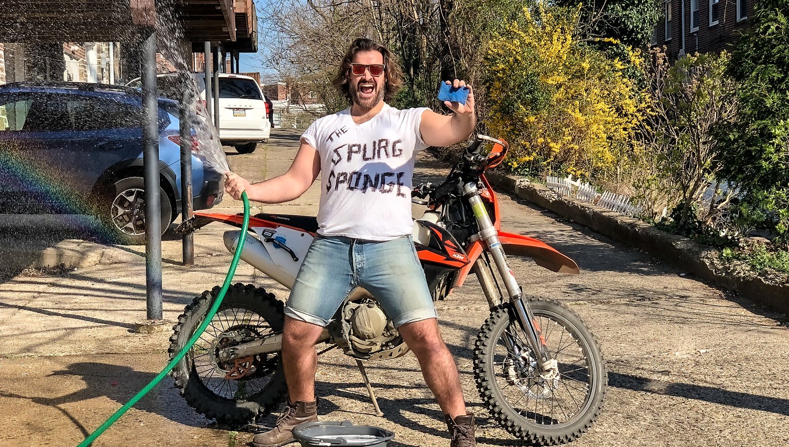 Why use an old rag to wash your motorcycle? Get it squeaky clean with the Spurg Sponge™. No ordinary sponge, the two-sided Spurg Sponge™ combines advanced science with natural ingredients. Natural sponge embryos from the South Pacific were individually selected by Common Tread's Spurgeon Dunbar himself (he used a microscope — he may have superhuman powers but he can't see sponge embryos with his bare eyes) and then grown in hyperbaric chambers to produce the raw materials for a super-strain of sponges with greater strength, superior absorbency and unparalleled motorcycle-grime-busting ability that no synthetic sponge could match. For the final step, one side of the sponge is exposed to a precise burst of gamma rays and ultraviolet radiation to stiffen the cellular structure for stronger scrubbing power.