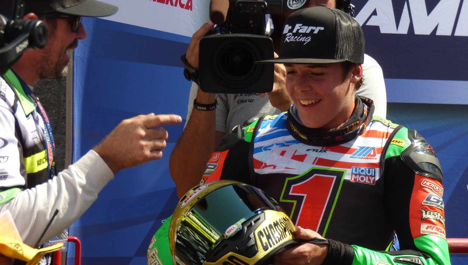 The 14-year-old racer became the youngest MotoAmerica champion ever on Saturday by winning his 11th Liqui Moly Junior Cup race of the season and clinching the title with three races left. He also got an invitation to compete in at least one of the remaining rounds of the CEV Repsol Junior World Championship in Spain before the end of the season, giving him a chance to show what he can do against other top young racers in Europe. That opportunity came out of conversations Landers had with Dorna executive Oscar Gallardo at the previous MotoAmerica round at Pittsburgh International Race Complex, as described in the profile of Landers published a few days ago on Common Tread.