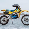 AC: Now I see it. The TS125 rear wheel is aligned about five to 10 degrees to the right of the front. It’s been “pretzeled,” so to speak. But it’s fine for left turns on ice. Falling isn’t so bad. I go down three times — two high-sides and a low-side. As a course gets carved in ice, technique replaces magic. Virgin ice offers fantastic grip, but ice shavings pile up. Predictable powerslides catch the ice underneath, sending bike and rider bolt upright.