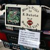 As I drew near, I noticed a plaque on the back of his bike. I couldn't read it, but we wound up riding together for maybe 50 miles or so. At some point, I drew close enough to read the placard, and I was pleased I had gotten a full tank of fuel right before I saw him. I could tell he was on a five-speed machine, and the ZLA Street Glide I was aboard is a six-speed, with a true overdrive. He'd burn through fuel faster than I would. That was good for me, because after I read the handmade sign, I knew I had to tail him until I could talk to him.