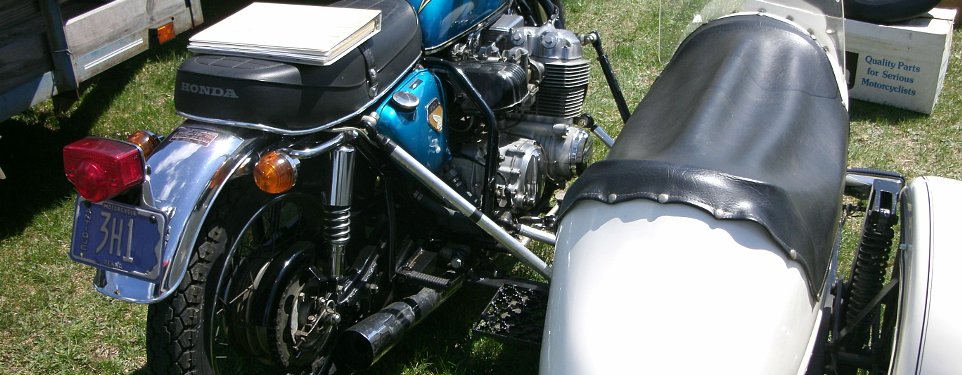 My internal monlogue went something like this. "Look at that motor hanging way out. Well, I'd recognize that any day of the week! A CBX! How nifty, with a sidecar, too. What fun!"