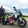 To test these systems while cornering, we headed out to the track with a cone course set up so that we could ride at 35 degrees of lean angle at 35, 45, and 55 mph. Once we’d hit the desired speed and lean angle, we were encouraged to stab at the brakes or get on the gas with increasing levels of severity. If this drill doesn’t already sound like absolute madness, consider that these bikes were lacking the outriggers from the previous drill. Despite going against everything I’ve come to believe about acceptable inputs mid-corner, the Multistrada handled our rough and choppy inputs and refused to let us crash. In addition to preventing crashes, the combination of ABS and linked braking also keeps the bike from running wide in a turn under braking, which is hugely important in the real world.
