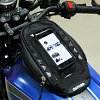Strap-mounted tank bags can be a bit cumbersome to remove for refueling. If you’re going to use a strap-mounted tank bag, I’d recommend one that utilizes quick- release straps so the base stays on the bike while the bag can be unbuckled for removal.