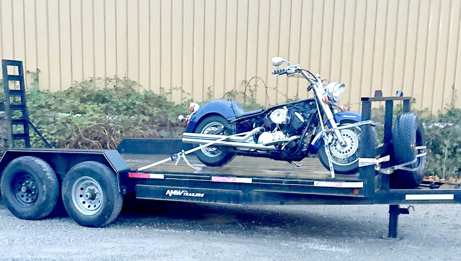 It was rainy and dark when my friend Joshua Thomacek pulled up in front of our house with his enormous one-ton truck and tandem axle flatbed trailer — obvious overkill for moving one old motorcycle (even if it was big-boned). It looked sad and absurd, even a little lonely up there, tied down with its tank removed and no other cargo. But overkill is kind of on-brand for Joshua.