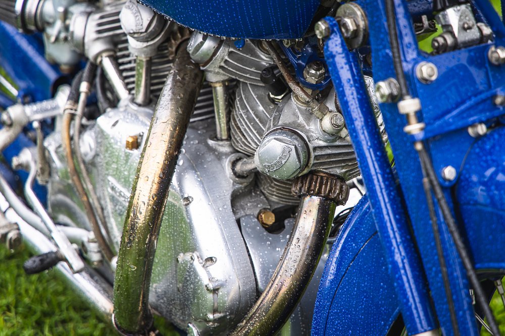 I could not find any information about this particular bike, but it sure is pretty. The Touring Vincents don’t get as much love as the Lightnings and Black Shadows, which is a shame. Just a beautiful bike and the color really sets it apart. Photo by Nathan May.
