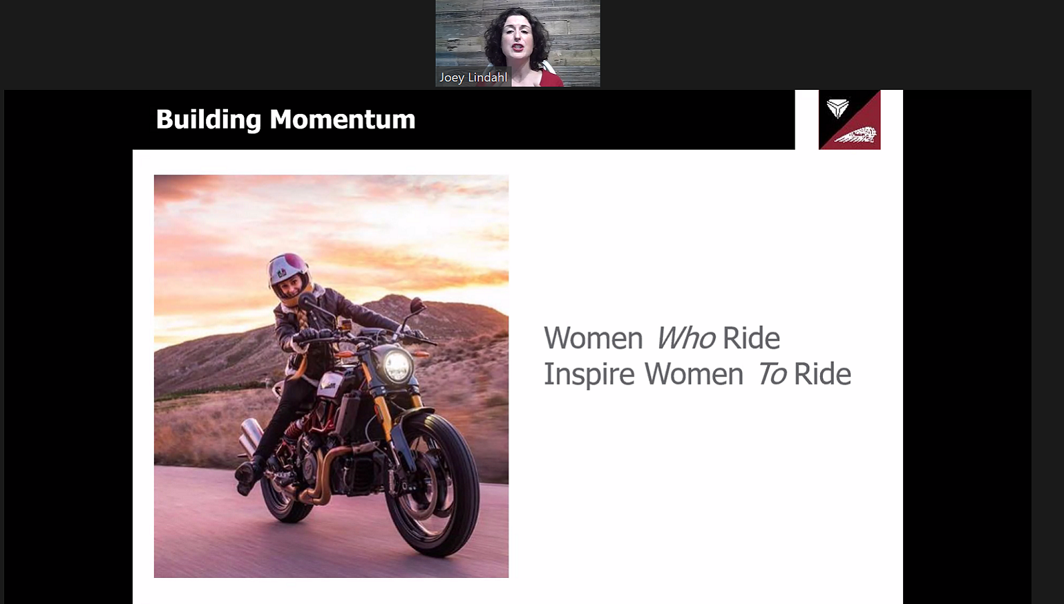 Another notable aspect is how the online conference eliminates barriers. There are so many motorcycle events I wish I could attend, but there is always some barrier, whether it is time off or the cost of travel. Virtual meet-ups like these allow me to connect with riders and have experiences that I normally would miss because I can't go to every event I'd like to join. Those barriers are even bigger for many new or potential riders, who can log in to their first conference much easier than they can travel across the country to one.
