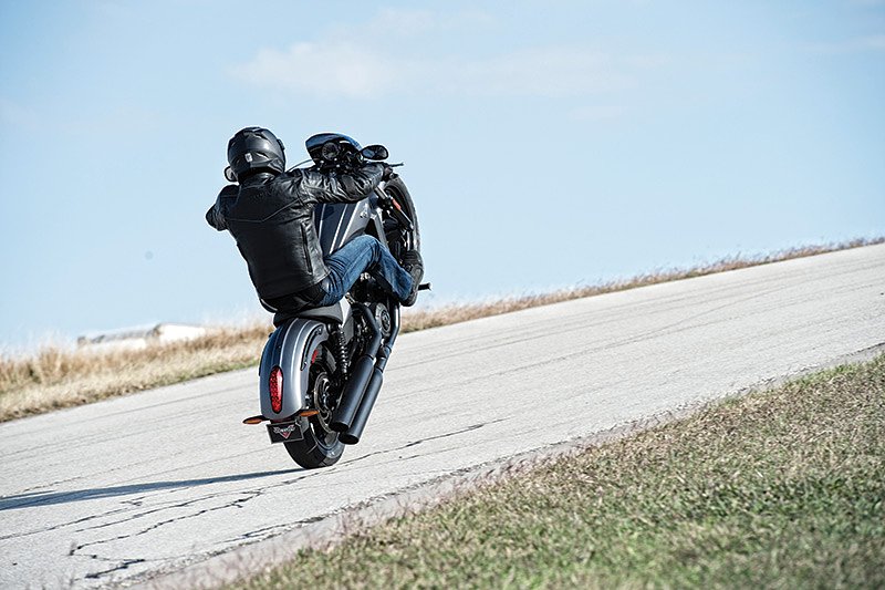 Victory is emphasizing performance with the Octane, using the tagline of “Modern American muscle” to promote it and pointing out that it makes more horsepower than any previous Victory model. In that context, a slightly modified Scout is not a bad thing at all, because we really like the Scout, starting with its modern, liquid-cooled, V-twin that likes to rev in a way most cruisers don’t. The Victory Octane spec sheet backs up the performance claims, at least in the context of a cruiser, but it also reminds us that this new motorcycle is virtually identical to a Scout.