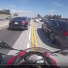 First, what the rider does right: He’s riding a Kawasaki Ninja 300. A reasonable choice for a rider with less than a year’s experience. It’s a nice, narrow bike that’s well suited to slipping through traffic. If you watch to the end, you’ll see he’s also wearing “all the gear”; a full-face helmet (the GoPro was mounted on chin bar), Dainese jacket, and Sedici motorcycle gloves; I can’t tell what he’s wearing for trousers. He’s lane splitting between lanes one and two, which is usually considered the best choice.